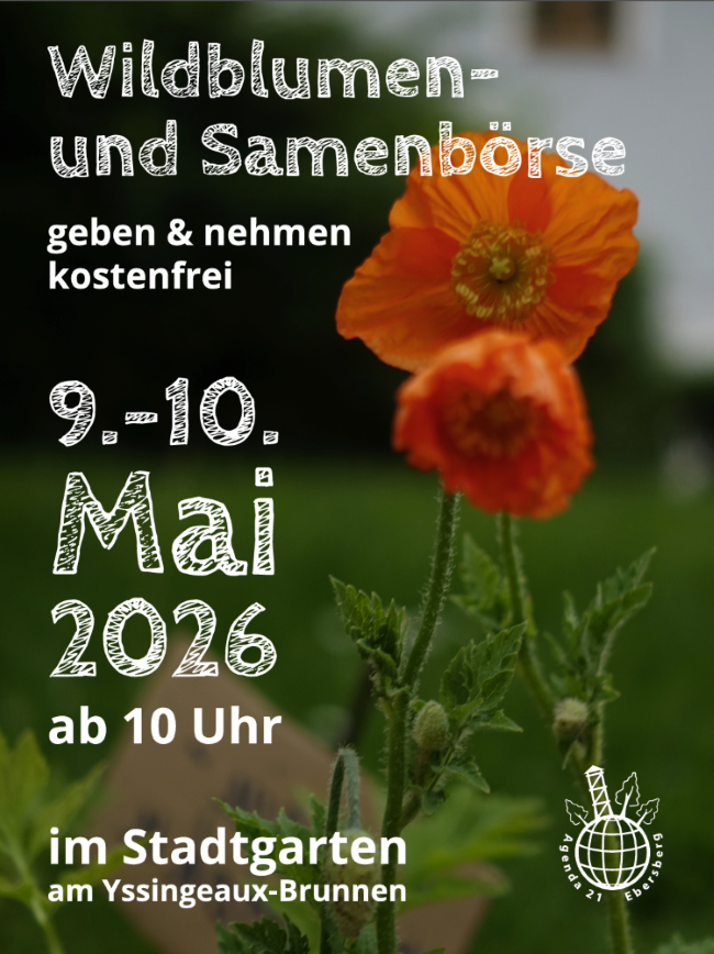 Am Wochenende vom 9. und 10. Mai 2026 findet die Wildblumen-Tauschbörse der Agendagruppe Natur statt. Im Stadtgarten am Yssingeaux-Brunnen werden wieder mehrere Hundert Wildblumen-Pflänzchen und heimisches Saatgut zum Tausch angeboten. Jeweils von 10 bis ca. 12 Uhr stehen Agendagruppen-Mitglieder zum Gespräch bereit und beraten zu den Pflanzen und ihren Bedürfnissen.
