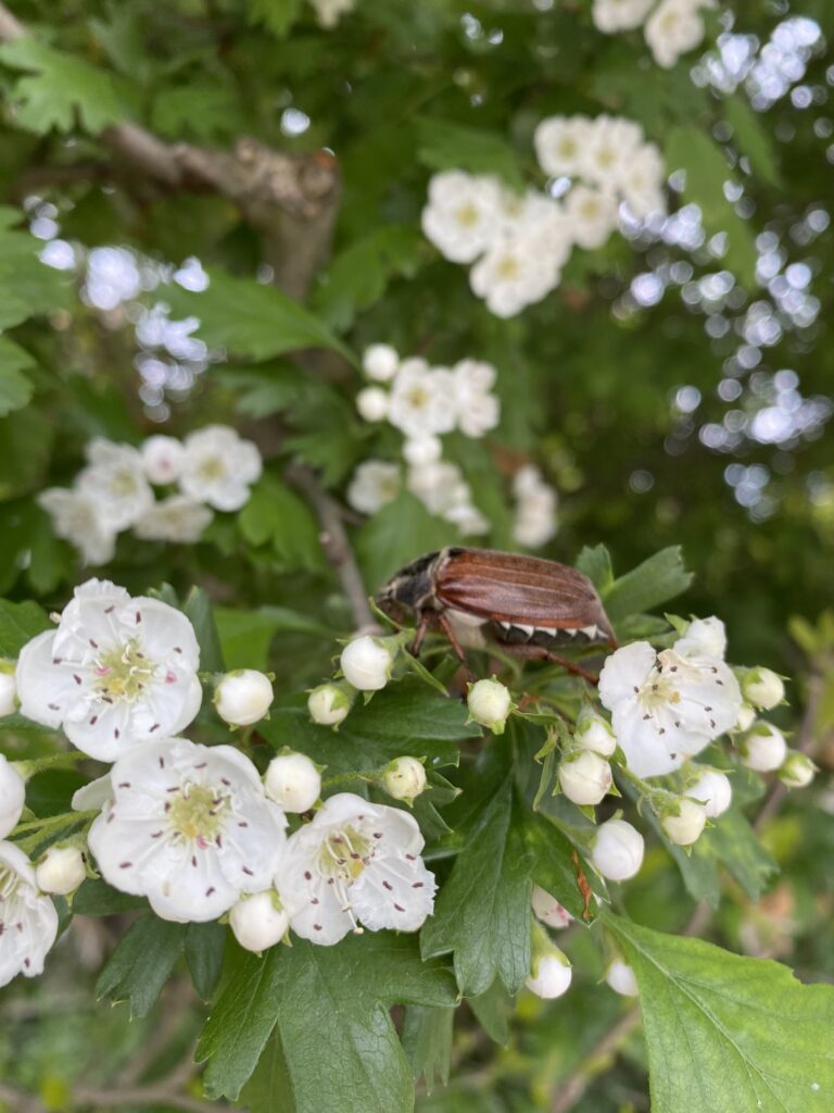 • Der grün-metallisch schimmernde Rosenkäfer liebt Wildrosen. Dazu braucht er Totholz und Komposthaufen, in dem sich über Jahre seine Larven entwickeln. Von Wildrosen profitieren darüber hinaus über 100 weiter Insektenarten.